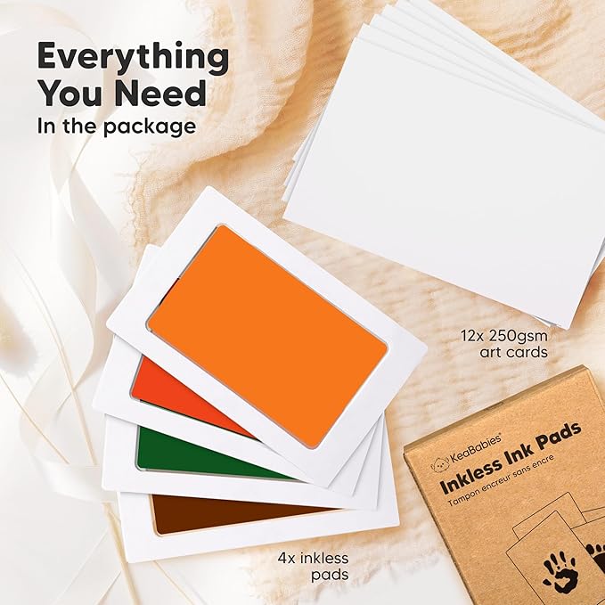 - 12 x 250GSM Art Cards - Your little one is perfect; so are their hand and footprint. Use the additional art cards to stamp multiple hand, foot or paw print. Choose the best artwork for your desired displays. Refer to our step-by-step instruction manual on how you can achieve the best results.