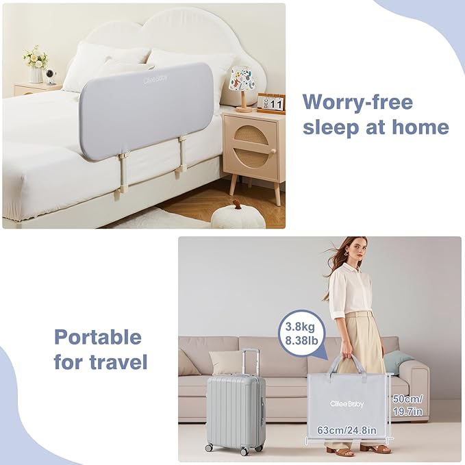 - Foldable and Portable: This toddler bed rails is lightweight and foldable. Coming with a carrying bag for easy storage , it ensures child safety on the go, giving parents peace of mind