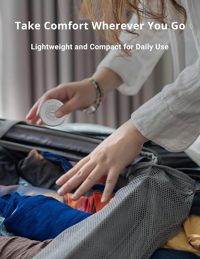 - Portable Sound Machine for Travel: Weighs only 2.88 oz; fits into pockets or bags; built-in fabric loop attaches to strollers, backpacks, or nightstands; compact design for bedrooms, nurseries, or travel sleep support