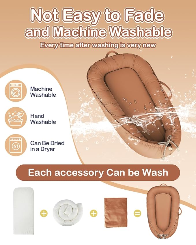 - π[π©πππππππππ ππππππ πππ πΊπππππ πππ πͺππππππ] The lounger features breathable cotton fabric as the cover, super soft and breathable polyester fiberfill for the bumper filling, and 3D breathable polyester for the mat filling. It adopts a bionic design to imitate mom's comfy womb, providing a comfortable and soothing environment for the baby. The baby lounger is approved by CPC and CPSIA. All of our newborn lounger covers are manufactured under strict supervision by a meticulous quality control team to ensure that the lounger covers meet all standards.