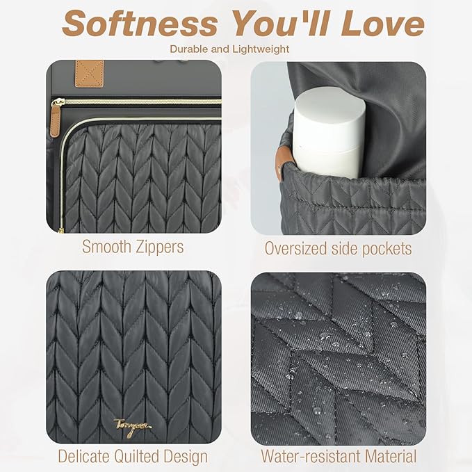 - Quilted Materials:Tonyeee diaper bag with 3D herringbone nylon quilting,achieve a perfect blend of practicality and fashion. While studded feet in the bottom keep the bag clean and off the ground