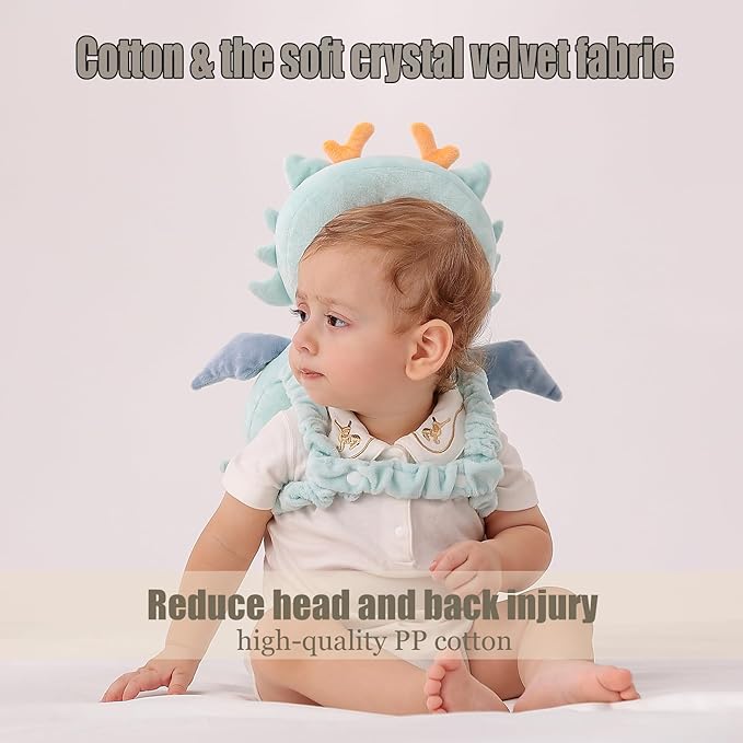Feidoog Baby Head Protector Cushion Backpack with 3 Knee Pads for Walking & Crawling,Blue Dragon