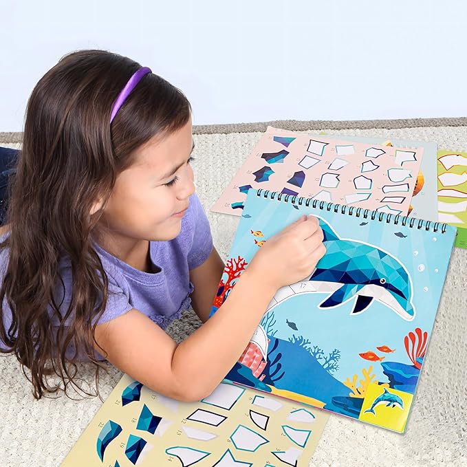 90shine 4PCS Crafts for Kids Ages 4-8 Sticker Paint Books Includes Dinosaur Marine Land Animals Multicolored Design Gifts Create 40 Pictures