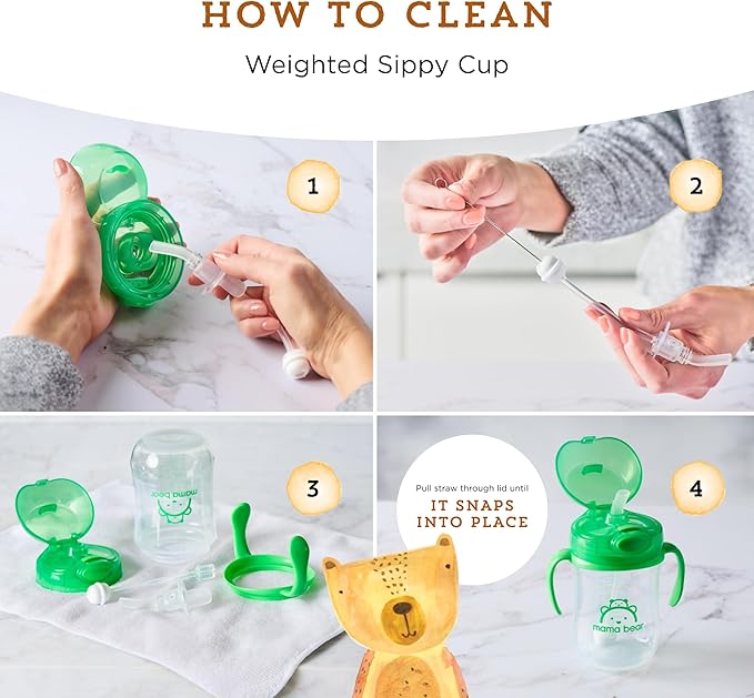 Amazon Brand - Mama Bear Silicone Weighted Straw Sippy Cup, 9 Ounces, Pack of 4, Blue/Green