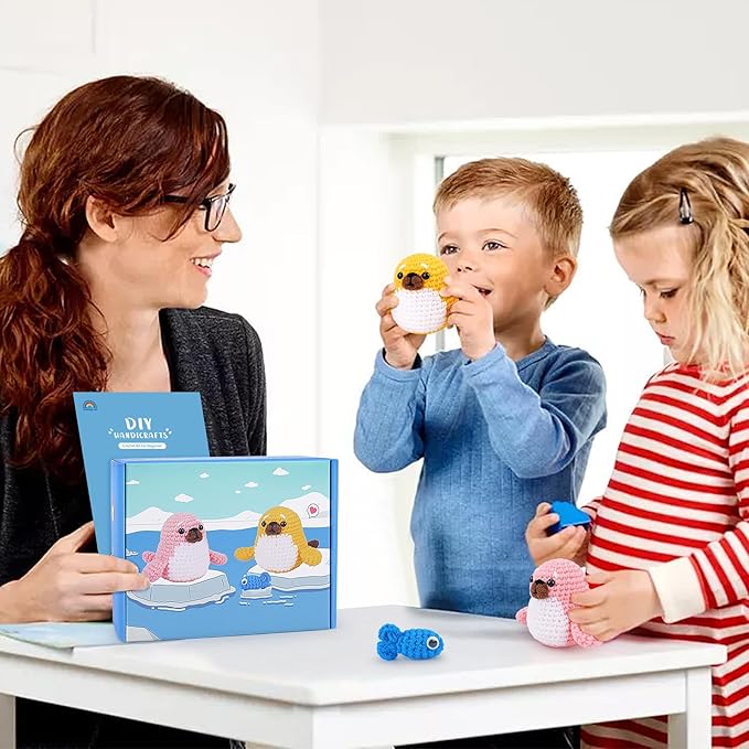 - CROCHET ANIMAL KIT: The crochet starter kit could crochet 2 cute seals and a small fish. It is designed for animal lovers and is loved by many. It will gently heal your heart as you crochet. The warm finished product can be used as a decoration and placed in the study room, living room, bedroom lamp, etc