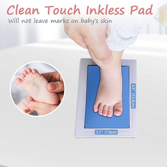 • [Perfect Gifts]: This baby ink hand and footprint kit measures 6.0"x4.2" and has an ink window of 4.9"x3.1".Ideal for newborn baby hand and footprint, use the baby inkless ink pad, you will have personalized baby footprint keepsake, it's not only for baby shower gifts but also for pet birthday gifts.