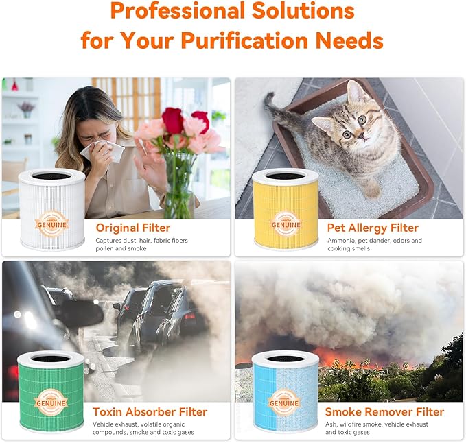 - 👑【Widely Use】:A 18W energy-saving long-life motor suitable for everyone. If you are a pet owner, I guess we can meet your require, cause this purifier can effectively absorb cat litter smell or dog hair, Btw, after cooking, you don't need to open the window, the purifier will help you to clean the air. And it also good for smokers, babies or children, and suitable for living rooms, bedroom, dorm, kitchen, office,classrooms,nursery or apartment.