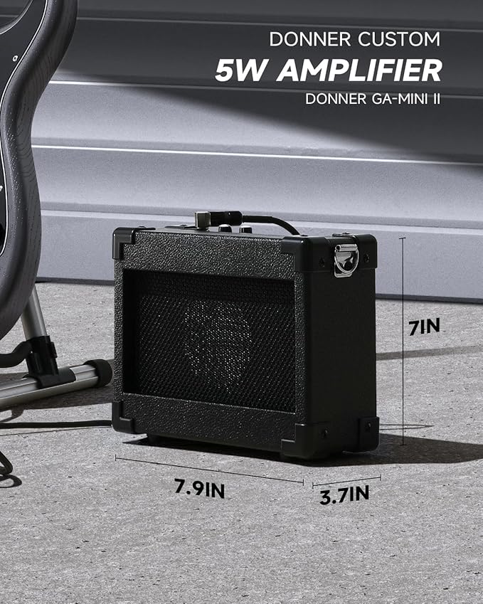 - COMPLETE BEGINNER’S PACKAGE:Open the box, and you’re ready to play. This beginner kits includes the DST-80 electric guitar, custom 5W amplifier, durable gig bag, capo, strap, extra strings, digital tuner, amp cable, picks, and access to free online lessons from Donner to help you grow and shine