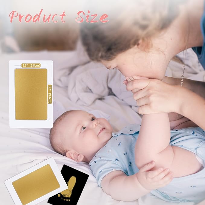 • DIY easy to use: This footprint kit for baby is easy to use. New moms only need to put their baby hands and feet on this inkless ink pad. This ink pad for baby hand and footprints measures 5.0"x3.2" with an ink window of 3.7"x2.3",which is perfect for your baby hands and feet, leaving a perfect imprint.