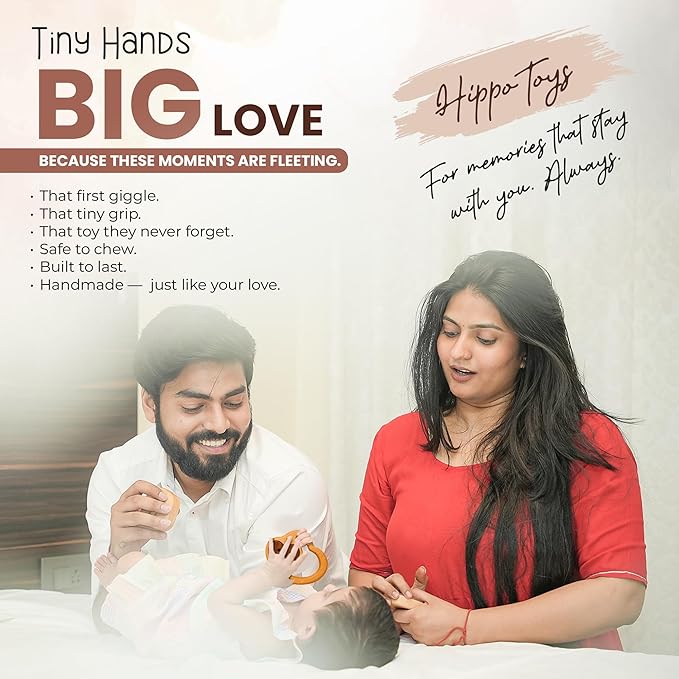 Baby Essentials – Wooden Teething Toy for 3–6 Months | Natural Baby Rattle | Safe Toys for Newborns