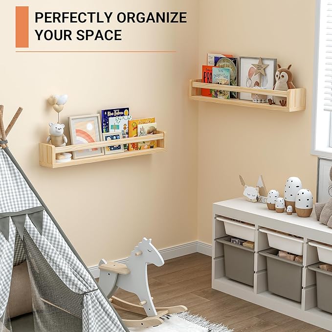 - [Ample Storage Space] - Measuring 24 inches, these nursery shelves offer ample room for organizing children's books, toys, photos, and other small items. They encourage a love for reading while keeping spaces tidy. With 0.6” thicken panels, each bookshelf can hold up to 30 LBS