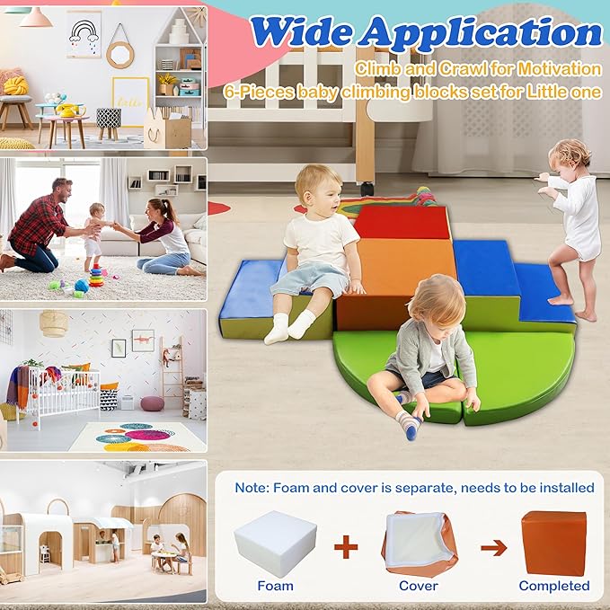 - 【Great Children's Present】6-piece soft kids climbing mats is designed for homes, playrooms, nurseries, kindergartens, and preschools to ensure safe, fun playtime for kids. This wall climbing foam block set is an ideal birthday gift for babies, toddlers and preschoolers