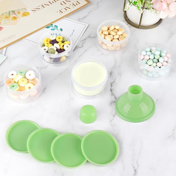 - Capacity - 5 layers design. You can put quantity of baby formula on each layer. A total of 5 layers of pre measured milk powder or food can be placed. Very pratical formula container for on the go.