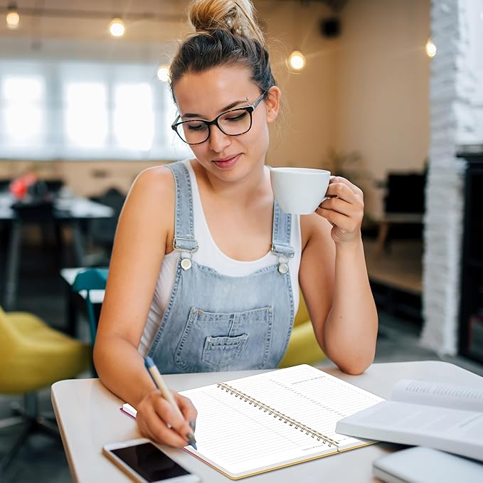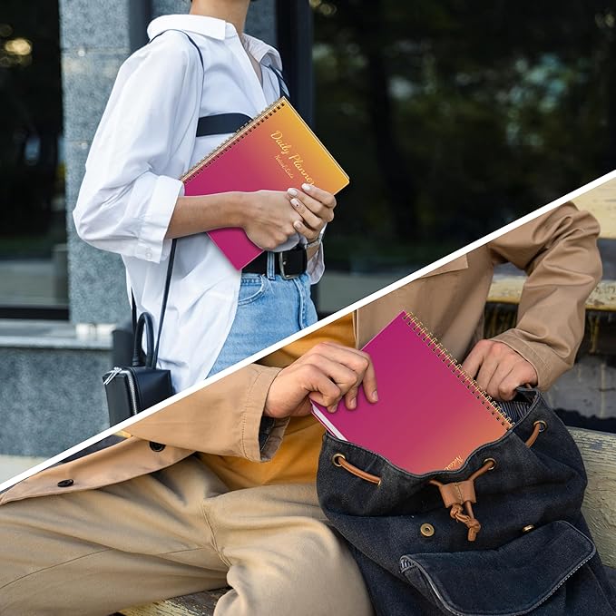 - Stylish & Functional Design: Featuring a chic gradient cover, gold foil lettering, and a golden ring binding, this planner combines beauty with practicality. Its clean, minimalist layout makes daily planning both enjoyable and visually appealing