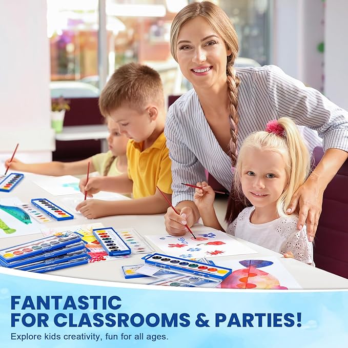 - Multi Purpose - Whether you use it to create colorful paintings or paint on crafts made of different materials such as stone, glass, ceramics, clothing, etc., these watercolor paints are versatile tools. Watercolor paint set is perfect for use at school, home, painting parties and more. Not only is it a great choice for school supplies, it's also a perfect gift for little kids, teens, and beginners.
