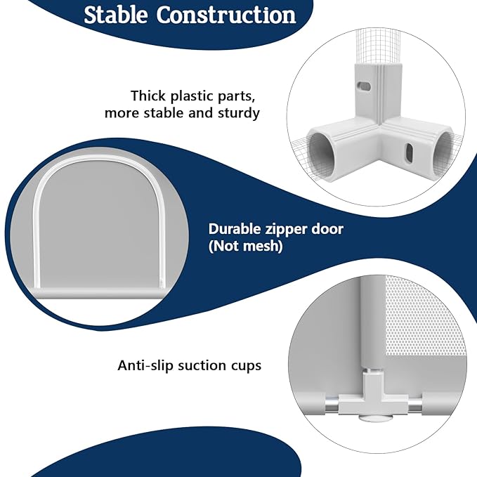 - 【SAFETY CERTIFIED & HEALTH MATERIAL】Our Jaobeem playpen with mat designed to care little baby health and safety! It is made of high quality material, soft non-toxic BPA-FREE fabric cares your baby skin, anti-slip suction cups make it not easy to move, 201 metal tubes support great construction . You can use it with confidence.