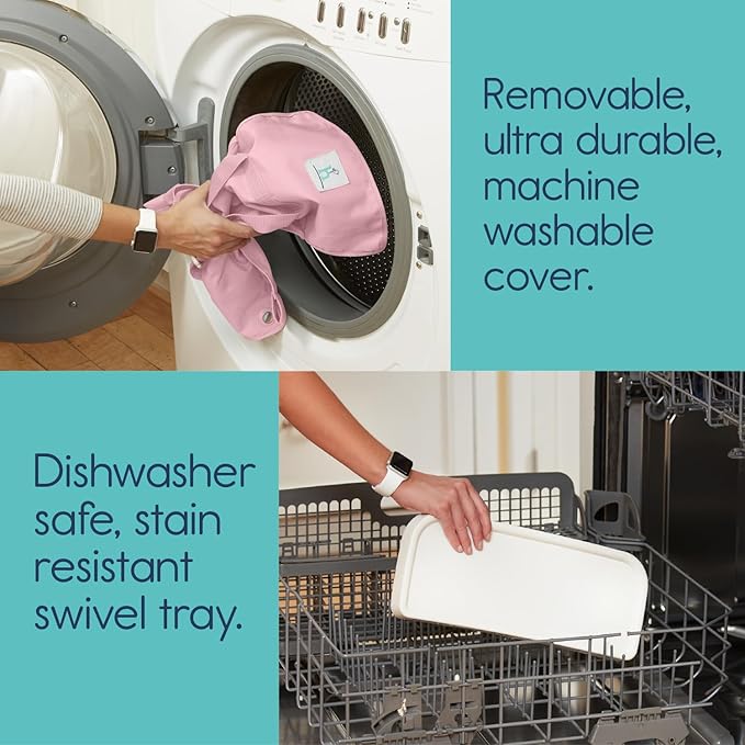 - MACHINE WASHABLE COVER | We all know that babies are messy eaters! Our portable booster seat is designed to effortlessly wipe clean, allowing more quality time with your precious tot. To assist with the inevitable mess, the fabric cover slides off the frame for machine washing - a must have for sanitizing and spaghetti stain removal.