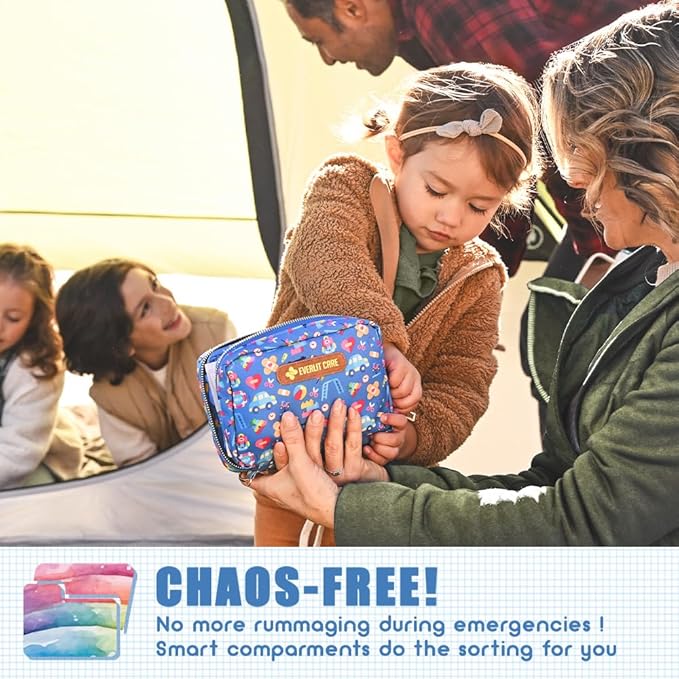 - 🌈 Travel-Friendly Organization: Our first aid kit is meticulously designed to ensure quick access during travel emergencies. Our supplies are neatly organized in designated compartments, all in one compact and portable storage bag, allowing for quick grabs during emergencies, making it perfect for parents on the go!