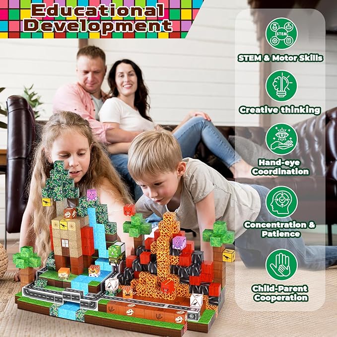 - [SENSORY EDUCATION TOYS FOR TODDLERS]: Engage children in creative play to enhance self-confidence, hand-eye coordination and motor skills. The sound of the magnetic cubes rustling attracts young children's attention while improving their concentration and patience.