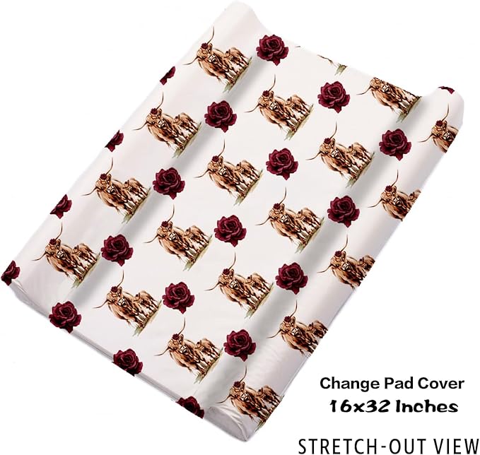 Custom Nursery Crib Bedding Set: Personalized Name 4 Piece Rose Highland Cow Design Baby Crib Sets for Girls - Toddler Double Layer Blanket Set, Comfortable Crib Bed Sheets for Baby Toddlers