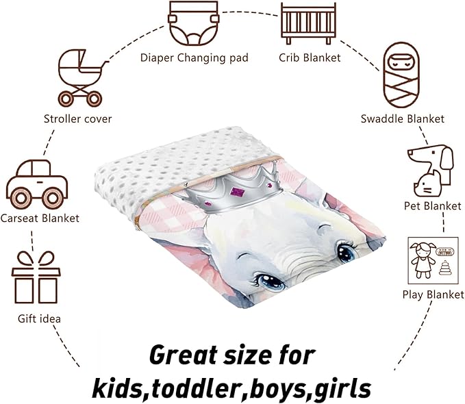 Custom Name Crib Bedding Set - Elephant Theme, Personalized Pink Checkered Nursery Bedding 3-Piece Set– Soft Blanket, Fitted Sheet, Changing Pad Cover – for Newborns Girls Nursery Gifts