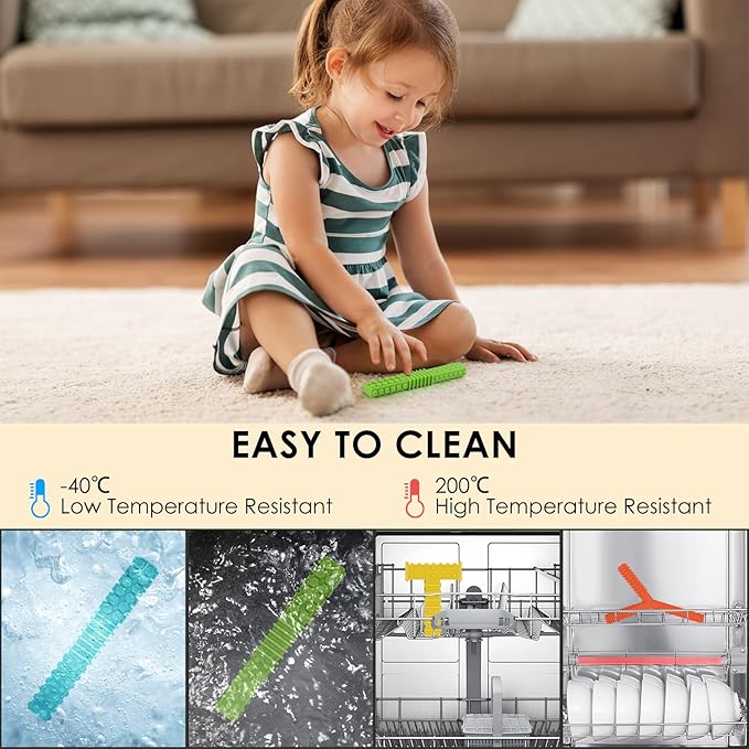 - EASY TO CLEAN: The toddler teether very easy to clean, just wash the sensory chewing toys with soapy water, or wash it with dishwasher. Our sensory chew stick can be sterilized by boiling water, steam sterilizer and sunlight. -40℃ to 200℃ Temperature resistant, we suggest cleaning it before first use and after each use
