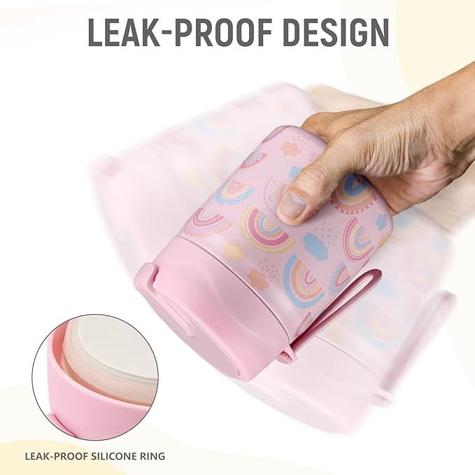 17oz Soup Thermo for Hot Food Kids Insulated Vacuum Food Jar with Stainless Steel Spoon Wide Mouth Thermo Leakproof Lunch Food Container Kids Hot Lunch Box (Pink-Rainbow)