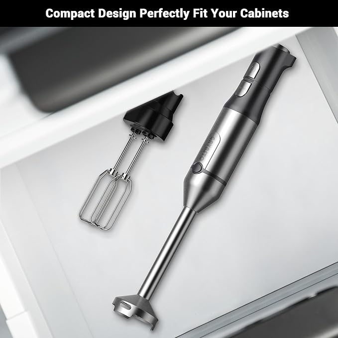 - Complete Kitchen Accessories Included: Your package comes with a snap-on Blending attachment, a twist-and-lock Chopper featuring a removable blade, and a pair of Egg Beaters. The versatile chopper doubles as a mini food processor, ensuring your kitchen tasks are both enjoyable and effortless with all the essential accessories included.