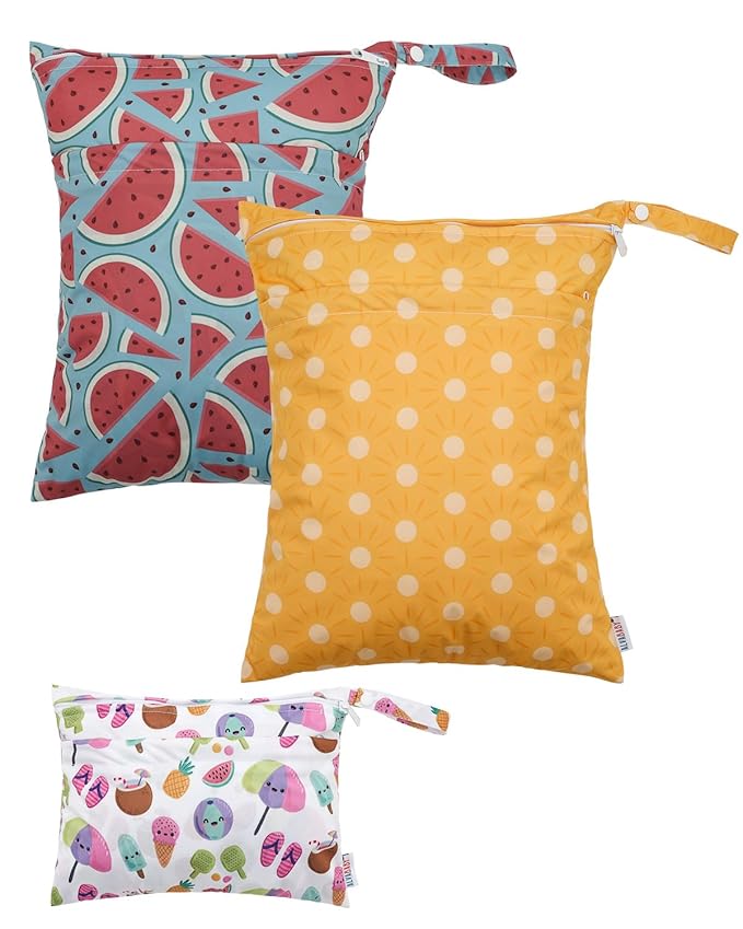 - Fashion , Reusable&Waterproof , High quality -A trim and attractive design. ALVABABY wet/dry bag are made from waterproof 100% polyester, put dirty cloth diapers in a wet bag. Comes with handle for easy carrying or attaching to your diaper bag or stroller.