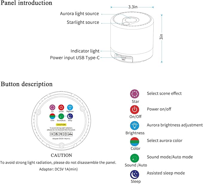 - AUTO MODE / SLEEP MODE / TIMER MODE / VOICE CONTROL: When adjusting the Galaxy Projector to Auto Mode, you can set your favourite lighting effects, and when you don't turn off the projector, the Galaxy Projector will always keep the lighting effects. When sleep mode is turned on for ten minutes, it will adjust to breathing mode and turn off automatically after about one hour. The Galaxy projector has an auto power off timer mode, use the remote control to set it to 0.5H/1H/2H/3H/4H after switching off, the projector will automatically switch off. When the voice-activated mode is turned on, the Galaxy projector's lights will change to the rhythm of music, clapping and stomping.
