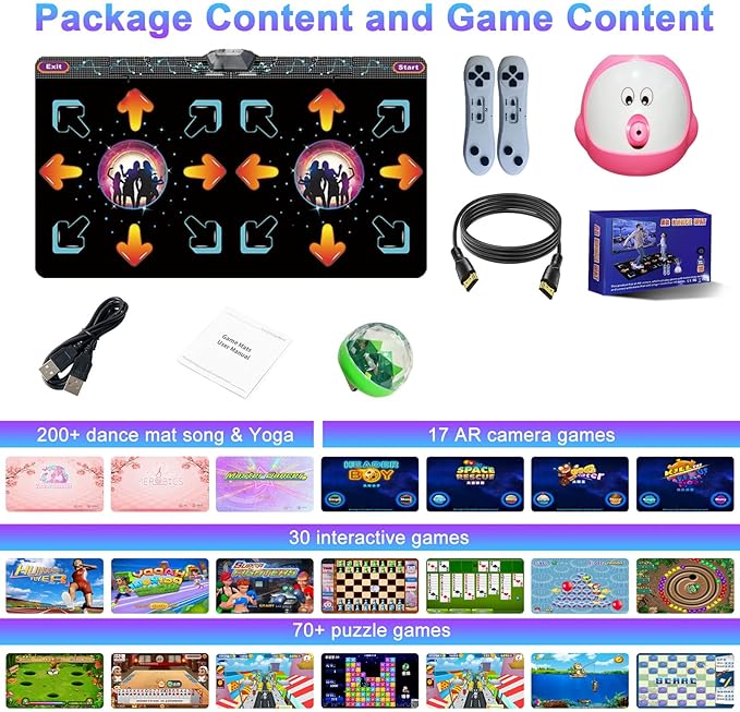 - 【Rich Interactive Games】 The Dance Mats Game also includes 17 AR camera games, 29 interactive games,58 puzzle games. These are joystick games and AR camera games. Such as fruit ninja,table tennis ,running can be played by two people, the game is interactive and competitive, enhancing the sense of tacit understanding between loved ones and doubling the fun.