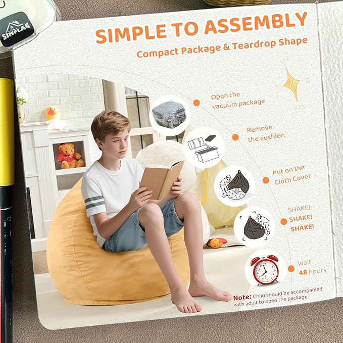 - WIDELY USE FURNITURE: Bean bag chairs is ideal for watching movies, studying, reading, gaming, napping, or just chilling, and is the perfect addition to every space, playroom, kid's room, living room, office, or school dorm.