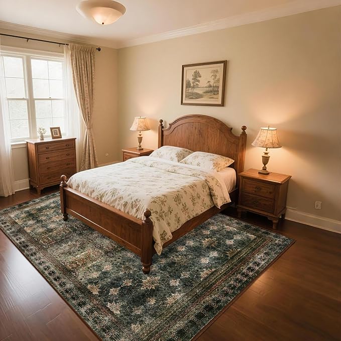 5x7 Washable Area Rug for Living Room Rustic, Non Slip Vintage Floral Bedroom Rugs Retro, Traditional Indoor Floor Carpet for Dining Room, Farmhouse, Office Classroom(Dark Green/Brown/Multi)