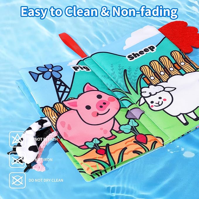 - Textured Tails for Tactile Discovery: These soft books for babies 0-6 months feature whimsical 3D animal tails with varying fabrics and textures to stimulate sensory development. As little ones explore this baby soft book, they’ll discover new ways to interact—from tactile play to soothing gum massage during teething. The added crinkle book sounds delight tiny ears, while the safe, chewable design makes it a perfect newborn book for 0-3 months. Every page turns into a multi-sensory adventure, naturally nurturing motor skills and cognitive growth.