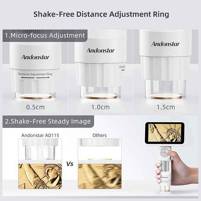 - 【Andonstar Shake - free Distance Adjustment Ring Design】 The distance adjustment ring enables micro - focus adjustment at different distances and delivers shake - free steady images.