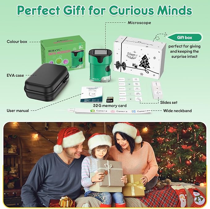 - Gift Box: A gift box has been added to the outside of the product's colour box. Not only protect the microscope and slides better, but also keep the surprise.