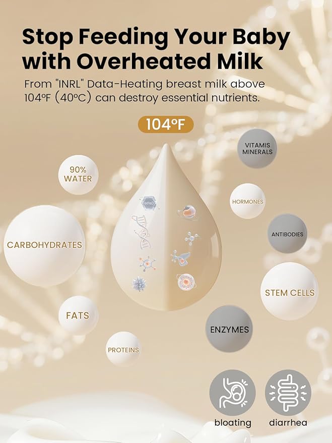 - 𝗙𝗮𝘀𝘁 𝗪𝗮𝗿𝗺𝗶𝗻𝗴 & 𝗡𝘂𝘁𝗿𝗶𝗲𝗻𝘁 𝗣𝗿𝗲𝘀𝗲𝗿𝘃𝗮𝘁𝗶𝗼𝗻: Heats 4oz/120ml milk to the ideal temperature in 2-5 minutes, preserving nutrients through gentle water bath technology that avoids overheating, supporting your baby's digestion and growth. Features a 24-hour keep warm function, perfect for nighttime feedings and immediate baby comfort.