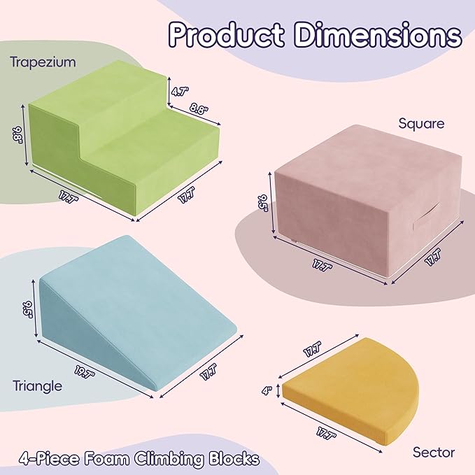 - 30D High-Density Foam Support:By applying 30D high density foam, these climbing blocks provide excellent support and elasticity for long-term use instead of usual hard cheap foam. They are perfect for kids to climb, crawl and slide. Parents can relax knowing their child play freely and safely on these blocks.