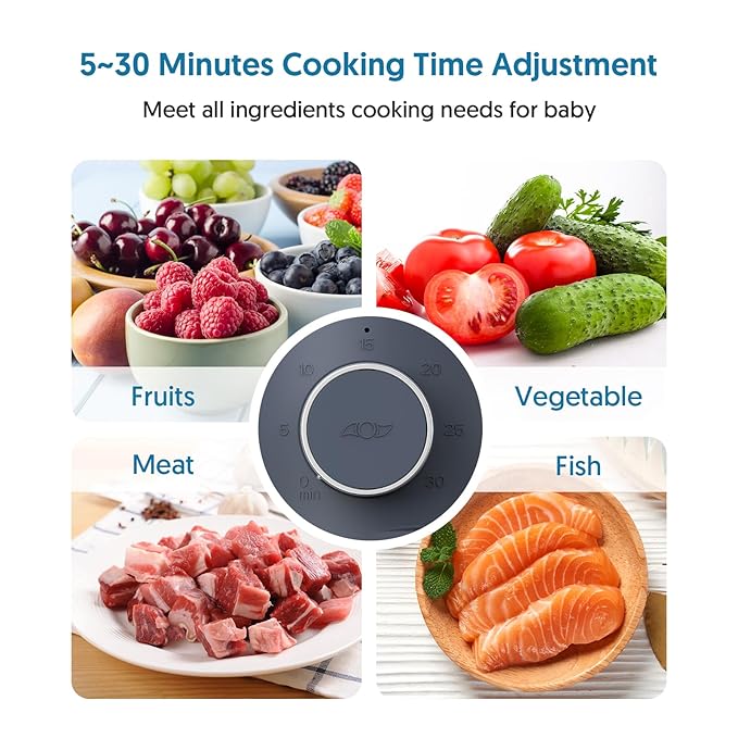 - One-Button Process: Turn the button to adjust steam time and press to mix , eliminating tedious steps. The unique blend feature lets you control consistency from fine to chunky puree. Suited for new parents.