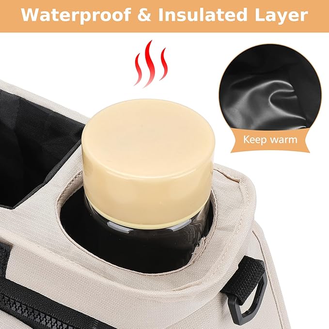 - Multi Structure: This stroller storage organizer equipped with multifunctional structure: Insulated cup holders on both sides to place baby bottles and drink cups; The middle storage compartment can accommodate baby diapers, wipes, pacifiers, teething toys and other accessories; Equipped with a detachable and portable small bag, it is convenient for mothers to store important items such as cell phones, wallet etc.