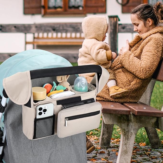 - Multiple Usage Methods : It can be hung as a stroller cup holder organizer on the stroller. When you don't need to use a stroller, you can also install the accompanying strap and carry this organizer bag for easy outing.