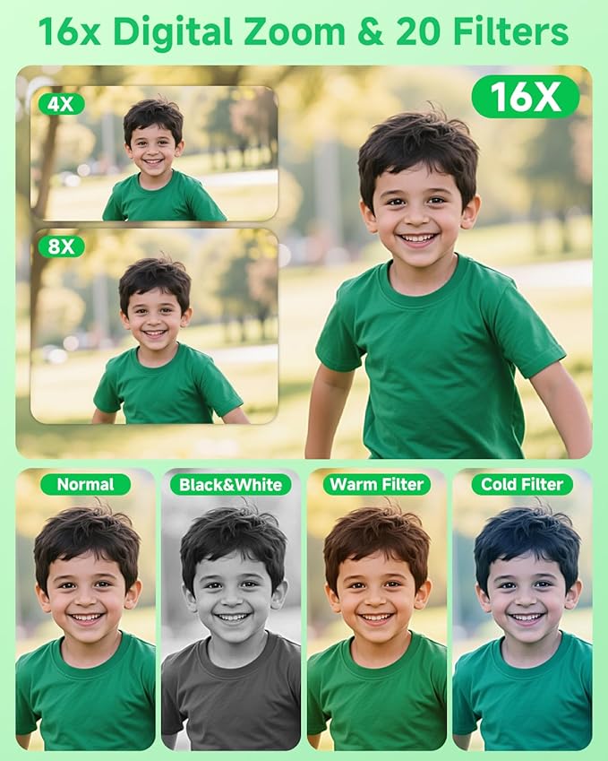 - 【Easy to Operate, Perfect Gift】This portable camera is designed to be easy to use and meet the daily photography needs of beginners. Its intuitive buttons and simple menus ensure that capturing every moment is as easy as pressing a button. It makes a thoughtful gift for young boys and girls or anyone who loves photography, a surprise for birthdays, Christmas or any special occasion.