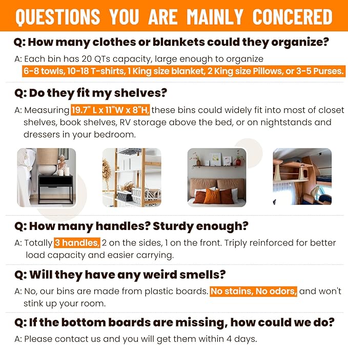- γπ― ππππππ ππΌππΏπππ & πππΌππππ πΏπππΌπππγThese closet organizer bins feature 3 built-in handles, reinforced for better carrying and moving, especially for wall-mounted closet shelves. Made of stiff plastic boards and durable non-woven fabric, these bins for organization could remain structured for years, also odorless for safer use.