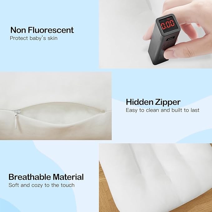 - Material: We chose to use organic cotton to keep our products from containing harmful chemicals. For our fills, we use polyester fiber with zero added chemicals or flame retardants. This baby lounger is CPC, AAP, and CPSC certified, ensuring that it meets rigorous safety standards. With its thoughtful design, providing a reliable space for your little one to explore and interact with family