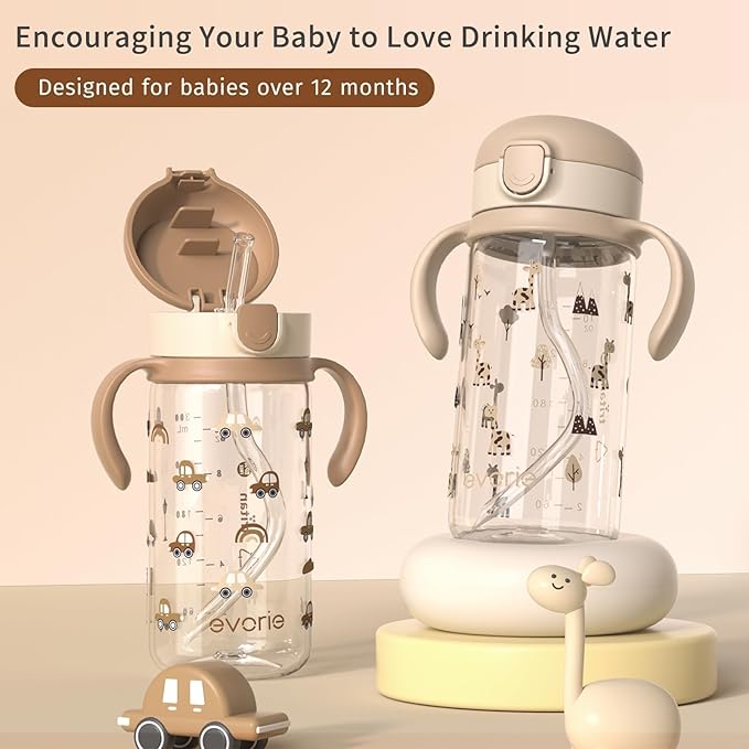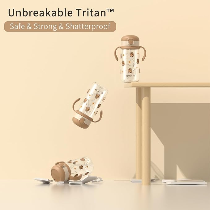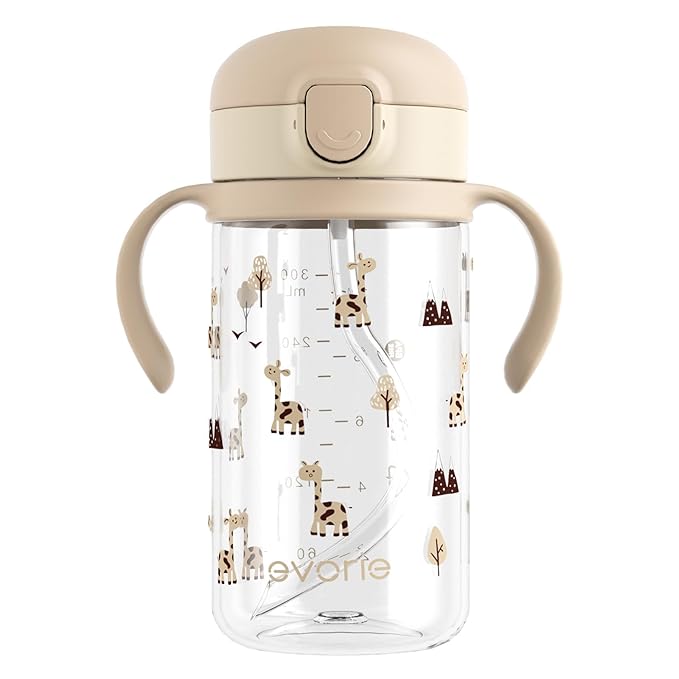 Evorie Tritan Spill Proof Toddler Straw Sippy Cup, 10 oz for Baby and Toddlers 1-3 Years Old, No Spill Straw Water Bottle with Removable Handles, Ideal for School, BPA-Free, Giraffe (NEW)