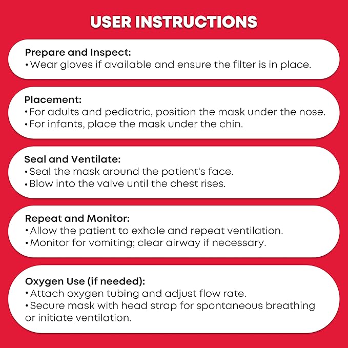 - SECURE & EFFECTIVE ONE-WAY VALVE DESIGN – Equipped with a high-quality one-way filter valve and a latex-free elastic head strap, providing a secure fit and hands-free operation during resuscitation efforts.