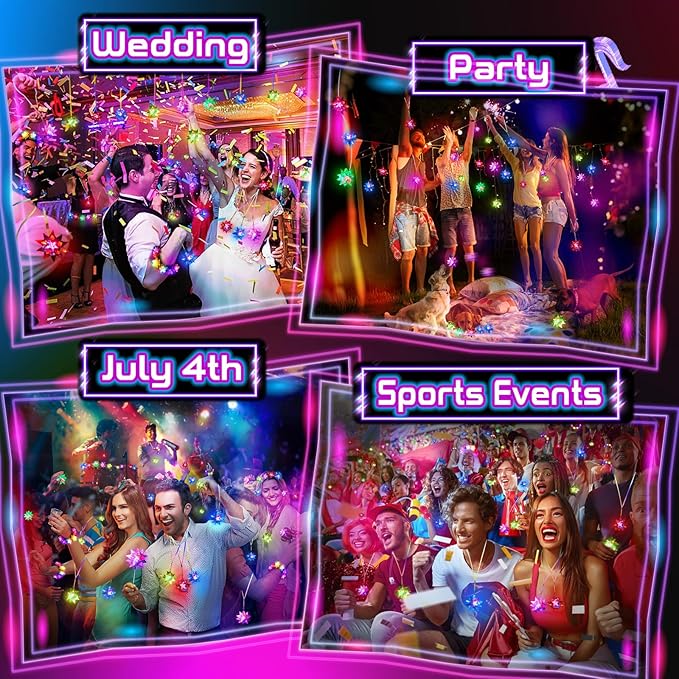 - 💎 GLOW PARTY FAVORS: LDE necklaces is a proper choice for carnivals or concerts, bouncing games, and birthday parties, which will add luster to your dark party, making people relax; In addition, it can also be given to others as a gift, game prizes, classroom giveaway.