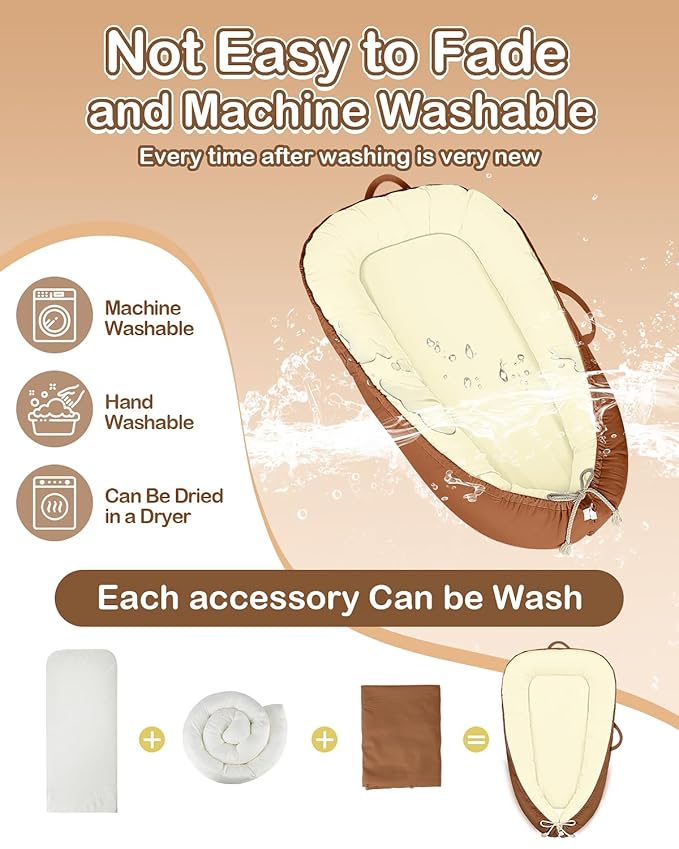 - 🌜 【Versatile Usage for Daily Needs】This baby nest serves multiple purposes — as a cozy resting spot, a safe place for playtime, tummy time, or even as a diaper changing station — offering convenience for parents in a variety of situations. (Note: Always use the baby lounger in a safe and supervised environment.)
