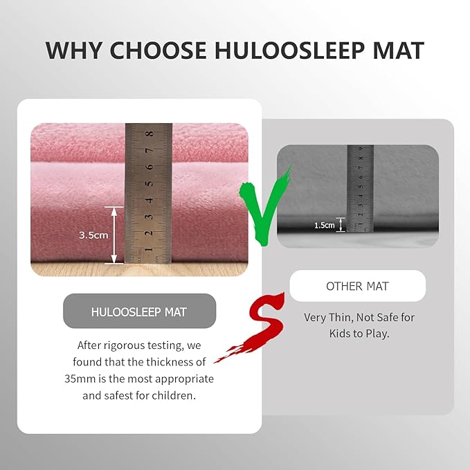 - 【SOFT TOUCH&THICK PLAYMAT】:Our nursery rug features high-quality, non-toxic 1.3-inch thick slow-rebound memory foam and is certified by OEKO-TEX fabric for added peace of mind. Made from non-shedding 100% coral velvet, it ensures a safe and worry-free play area for your little ones. The skin-friendly material provides a comfortable touch, while the non-slip design creates a secure space for play. This design also enhances longevity, maintains aesthetic appeal, and protects your floors, offering a comfortable stepping surface