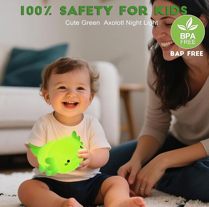 - Safe and BPA Free:Cute Axolotl lamp,Using food grade safe materials,BPA free, safe for kids,soft silicone material Soft lighting,soft touch,that can be kneaded freely,axolotl night light is a cute bedtime toy for kids to relieve stress,It is also a cute kids room decor